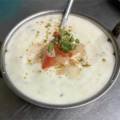 Lightly spiced curds with onions, cucumber, tomatoes and spices